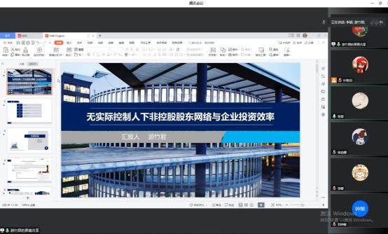 游竹君老师分享工作论文:《无实际控制人下非控股股东网络与企业投资效率》。游老师提到,近年来,无实际控制人现象越来越普遍,且成为资本市场股权分散化的极端典型,据统计2000-2009年间,无实际控制人上市公司占A股上市公司数量的比重从1.04%逐年上升至6%。然而无实际控制人可能出现内部人控制问题,加重代理成本,且无明确的追责主体,制约了证监会对企业行为的监管,也增加了投资者的投资风险。而股权结构是公司治理的逻辑起点,因此在中国市场无实际控制人现象越来越普遍的背景下,有必要厘清无实际控制人企业在公司治理和经营活动中产生的影响以及我国资本市场的投资者应如何应对这一变化。基于以上背景,游竹君老师提出本文研究问题:无实际控制人下非控股股东网络与企业投资效率之间存在怎样的关系。本文以2014年和2019年我国A股上市公司为研究样本,探究了无实际控制人下非控股股东网络与企业投资效率的关系。研究发现,非控股股东网络中心度能有效提升无实际控制人企业的投资效率,抑制了过度投资的非效率投资行为;抑制管理层货币性私有收益和非货币性私有收益是非控股股东网络提高无实际控制人企业投资效率的主要路径,企业信息环境、所处地域法律环境和整体上经济政策不确定性都会影响非控股股东网络的价值实现。
