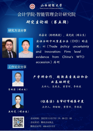 与智能管理会计研究院联合举办的研究生论坛(暨博硕士生学术沙龙活动)第五期以线上会议的形式举行。参会人数达160余人。