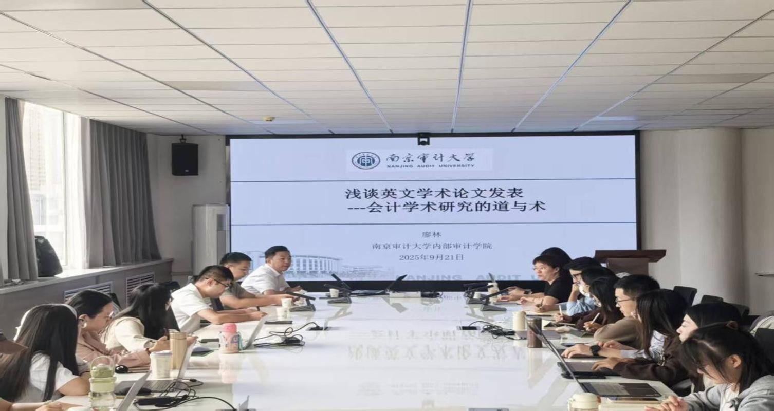 邀请南京审计大学内部审计学院廖林教授进行学术交流。廖林教授为学院科研骨干、博士研究生和硕士研究生作《浅谈英文学术论文发表——会计学术研究的道与术》为主题的学术报告,详细介绍学术研究的个人心得和SSCI英文投稿注意事项,并在会后就相关研究热点问题进行了讨论与交流。廖教授的报告增强了学院科研骨干对英文学术论文发表的理解和认识,有助于学院师生积累英文学术论文发表的经验和启示。
